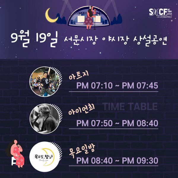 [행사안내] 서문야시장 상설무대 공연안내 9월 19일 페이지 정보 작성자 행사관리자 작성일21-09-19 12:04 조회882회 댓글0건 관련링크 이전글 다음글 목록 본문 9월19일 오늘의 일정 입니다. 댓글목록 등록된 댓글이 없습니다. 이전글 다음글 목록