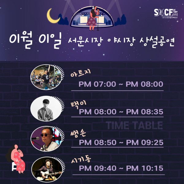 [행사안내] 서문야시장 상설무대 공연안내 01월 01일 페이지 정보 작성자 행사관리자 작성일22-01-01 18:08 조회955회 댓글0건 관련링크 이전글 다음글 목록 본문 1월 1일 오늘의 일정 입니다. 댓글목록 등록된 댓글이 없습니다. 이전글 다음글 목록