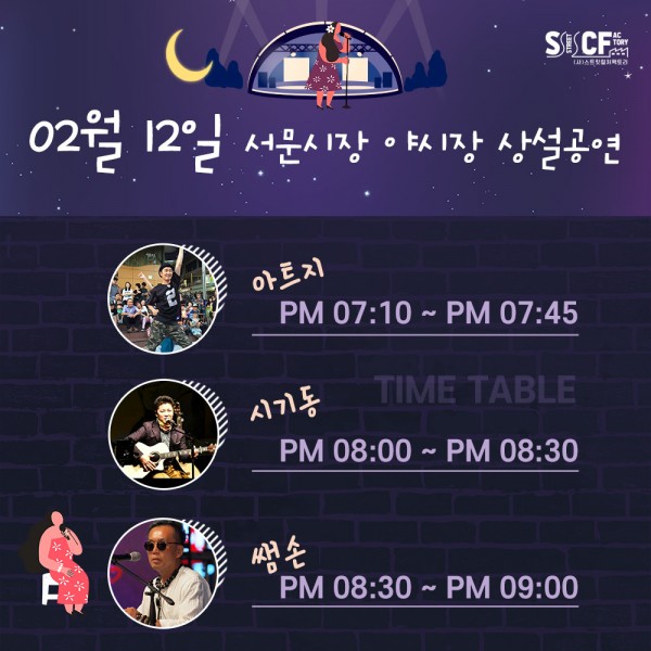 [행사안내] 서문야시장 상설무대 공연안내 02월 12일 페이지 정보 작성자 행사관리자 작성일22-02-12 18:06 조회920회 댓글0건 관련링크 이전글 다음글 목록 본문 2월 12일 오늘의 일정 입니다. 댓글목록 등록된 댓글이 없습니다. 이전글 다음글 목록