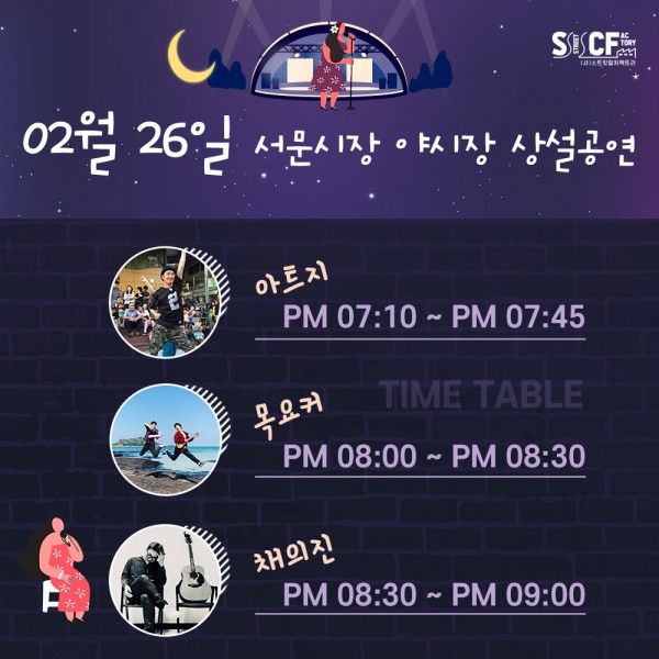 [행사안내] 서문야시장 상설무대 공연안내 02월 26일 페이지 정보 작성자 행사관리자 작성일22-02-26 18:03 조회966회 댓글0건 관련링크 이전글 다음글 목록 본문 2월 26일 오늘의 일정 입니다. 댓글목록 등록된 댓글이 없습니다. 이전글 다음글 목록