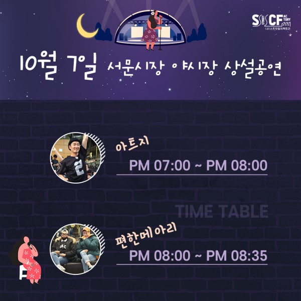 [행사안내] 서문야시장 상설무대 공연안내 10월 7일 페이지 정보 작성자 행사관리자 작성일20-10-07 16:48 조회1,135회 댓글0건 관련링크 이전글 다음글 목록 본문 10월 7일 오늘의 일정입니다 댓글목록 등록된 댓글이 없습니다. 이전글 다음글 목록