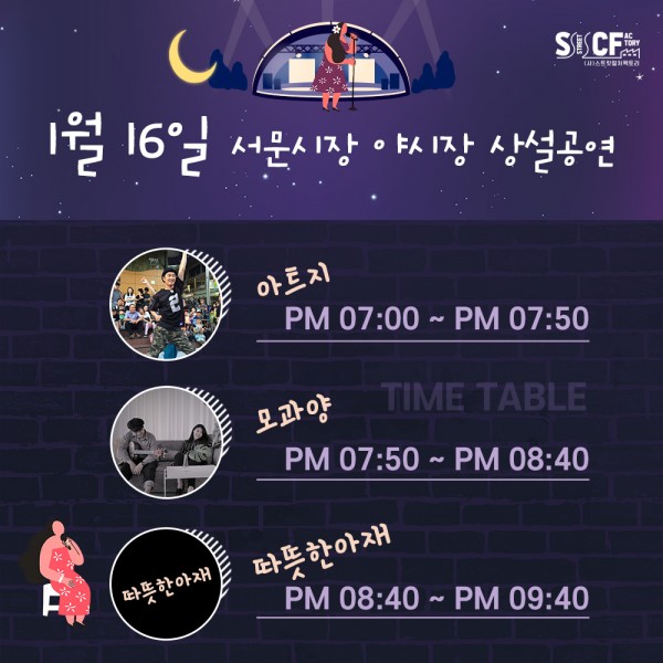 [행사안내] 서문야시장 상설무대 공연안내 1월 16일 페이지 정보 작성자 행사관리자 작성일21-01-16 11:24 조회975회 댓글0건 관련링크 이전글 다음글 목록 본문 1월 16일 오늘의 일정입니다. 댓글목록 등록된 댓글이 없습니다. 이전글 다음글 목록
