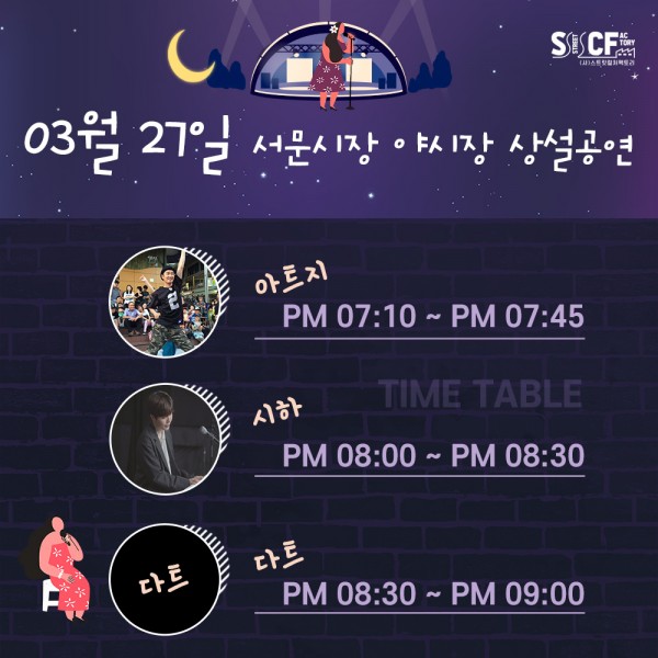 [행사안내] 서문야시장 상설무대 공연안내 03월 27일 페이지 정보 작성자 행사관리자 작성일22-03-29 12:23 조회1,011회 댓글0건 관련링크 이전글 다음글 목록 본문 3월 27일 일정 입니다. 댓글목록 등록된 댓글이 없습니다. 이전글 다음글 목록