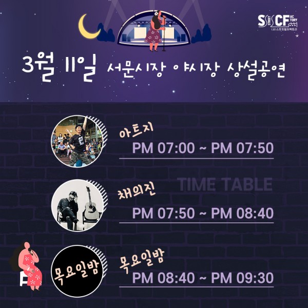 [행사안내] 서문야시장 상설무대 공연안내 3월 11일 페이지 정보 작성자 행사관리자 작성일21-03-11 12:02 조회1,034회 댓글0건 관련링크 이전글 다음글 목록 본문 3월 11일 오늘의 일정 입니다. 댓글목록 등록된 댓글이 없습니다. 이전글 다음글 목록