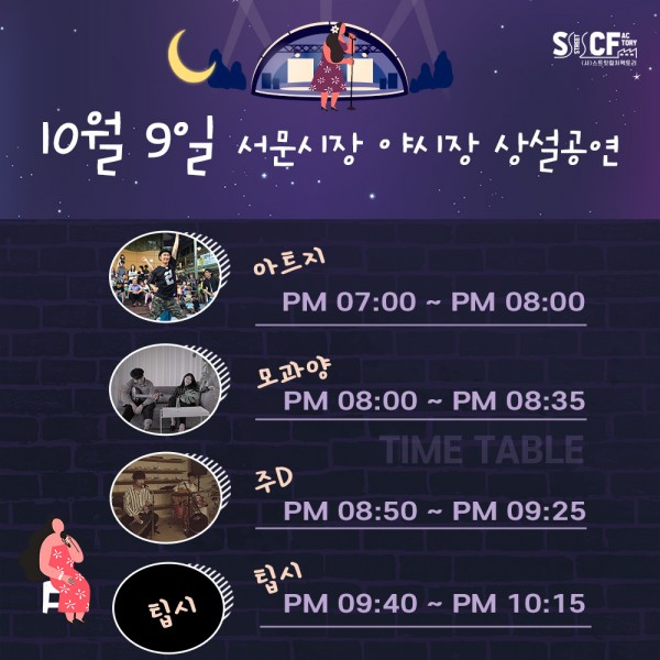[행사안내] 서문야시장 상설무대 공연안내 10월 9일 페이지 정보 작성자 행사관리자 작성일21-10-09 18:12 조회863회 댓글0건 관련링크 이전글 다음글 목록 본문 10월 9일 오늘의 일정 입니다. 댓글목록 등록된 댓글이 없습니다. 이전글 다음글 목록