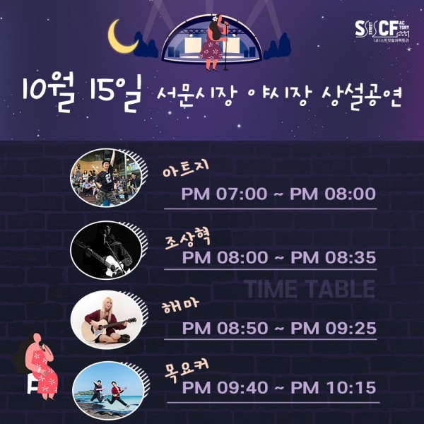 [행사안내] 서문야시장 상설무대 공연안내 10월 15일 페이지 정보 작성자 행사관리자 작성일21-10-15 12:12 조회855회 댓글0건 관련링크 이전글 다음글 목록 본문 10월 15일 오늘의 일정 입니다. 댓글목록 등록된 댓글이 없습니다. 이전글 다음글 목록