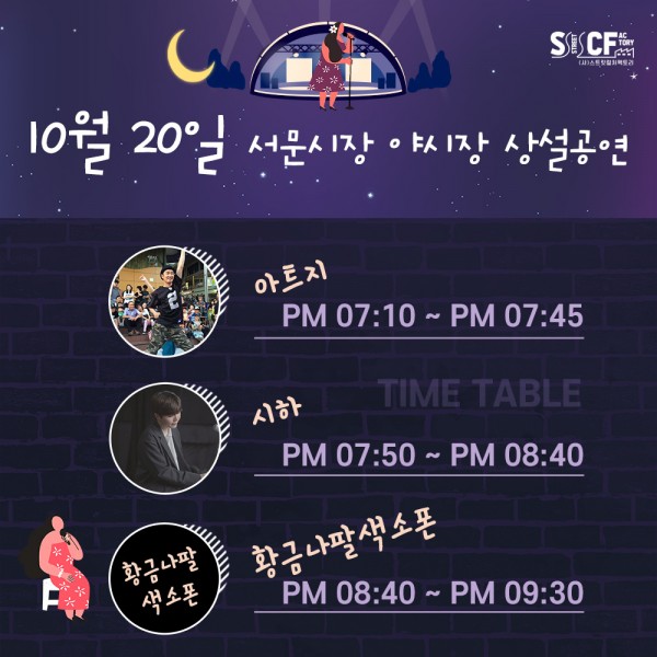 [행사안내] 서문야시장 상설무대 공연안내 10월 20일 페이지 정보 작성자 행사관리자 작성일21-10-20 17:39 조회891회 댓글0건 관련링크 이전글 다음글 목록 본문 10월 20일 오늘의 일정 입니다. 댓글목록 등록된 댓글이 없습니다. 이전글 다음글 목록