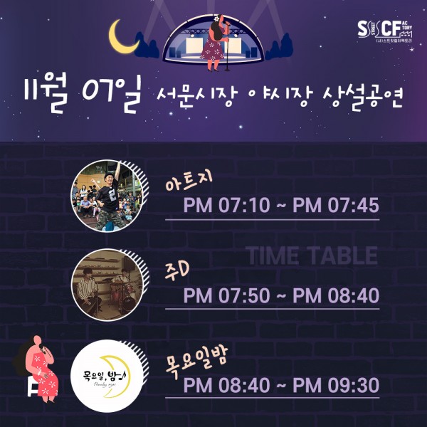 [행사안내] 서문야시장 상설무대 공연안내 11월 07일 페이지 정보 작성자 행사관리자 작성일21-11-07 20:32 조회899회 댓글0건 관련링크 이전글 다음글 목록 본문 11월 7일 오늘의 일정 입니다. 댓글목록 등록된 댓글이 없습니다. 이전글 다음글 목록