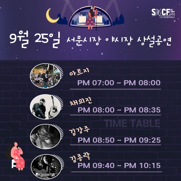 [행사안내] 서문야시장 상설무대 공연안내 9월 25일 페이지 정보 작성자 행사관리자 작성일21-09-25 18:03 조회892회 댓글0건 관련링크 이전글 다음글 목록 본문 9월 25일 오늘의 일정 입니다. 댓글목록 등록된 댓글이 없습니다. 이전글 다음글 목록