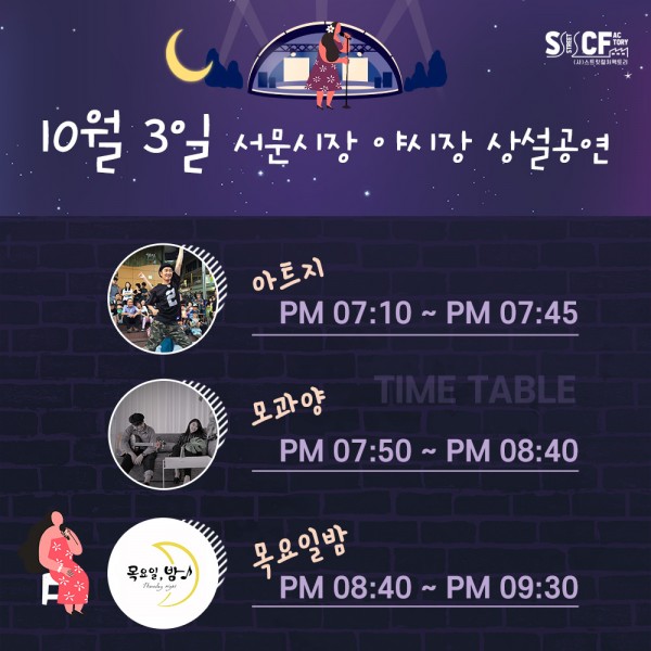 [행사안내] 서문야시장 상설무대 공연안내 10월 3일 페이지 정보 작성자 행사관리자 작성일21-10-03 17:36 조회867회 댓글0건 관련링크 이전글 다음글 목록 본문 10월 3일 오늘의 일정 입니다. 댓글목록 등록된 댓글이 없습니다. 이전글 다음글 목록