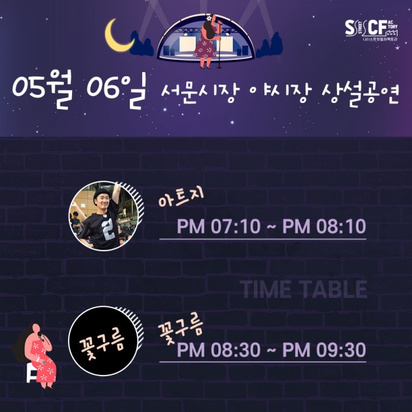 [행사안내] 서문야시장 상설무대 공연안내 05월 06일 페이지 정보 작성자 행사관리자 작성일22-05-06 15:25 조회1,412회 댓글0건 관련링크 이전글 다음글 목록 본문 5월 6일 오늘의 일정 입니다. 댓글목록 등록된 댓글이 없습니다. 이전글 다음글 목록