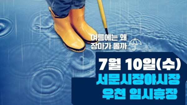 [긴급공지]7월 10일(수) 야시장 휴장 안내 페이지 정보 작성자 마스터 작성일19-07-10 19:23 조회5,775회 댓글0건 관련링크 이전글 다음글 목록 본문 대구 서문시장야시장은 오늘 우천으로 휴장합니다. 내일 더 나은 모습으로 찾아뵙겠습니다. 댓글목록 등록된 댓글이 없습니다. 이전글 다음글 목록