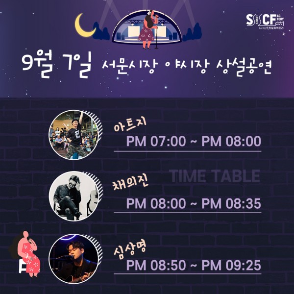 [행사안내] 서문야시장 상설무대 공연안내 9월7일 페이지 정보 작성자 행사관리자 작성일20-09-07 11:36 조회1,207회 댓글0건 관련링크 이전글 다음글 목록 본문 9월 7일 오늘의 일정입니다. 댓글목록 등록된 댓글이 없습니다. 이전글 다음글 목록