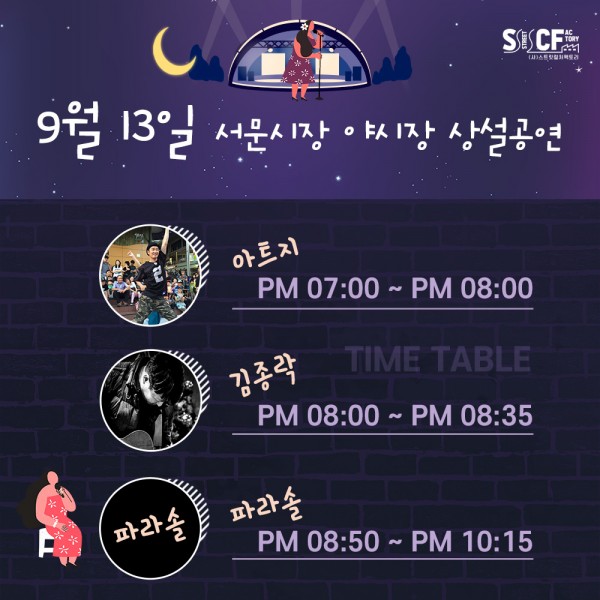 [행사안내] 서문야시장 상설무대 공연안내 9월13일 페이지 정보 작성자 행사관리자 작성일20-09-13 12:38 조회1,084회 댓글0건 관련링크 이전글 다음글 목록 본문 9월 13일 오늘의 일정입니다. 댓글목록 등록된 댓글이 없습니다. 이전글 다음글 목록