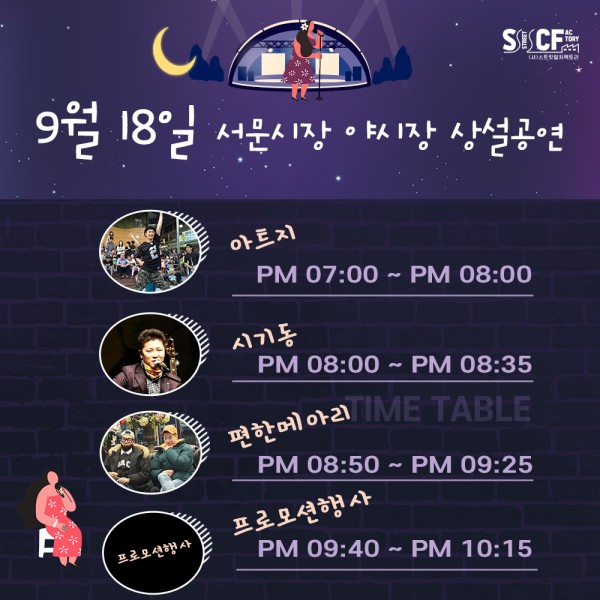 [행사안내] 서문야시장 상설무대 공연안내 9월18일 페이지 정보 작성자 행사관리자 작성일20-09-18 11:40 조회1,140회 댓글0건 관련링크 이전글 다음글 목록 본문 9월 18일 오늘의 일정입니다. 댓글목록 등록된 댓글이 없습니다. 이전글 다음글 목록