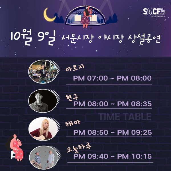 [행사안내] 서문야시장 상설무대 공연안내 10월 9일 페이지 정보 작성자 행사관리자 작성일20-10-09 12:21 조회1,188회 댓글0건 관련링크 이전글 다음글 목록 본문 10월 9일 오늘의 일정입니다. 댓글목록 등록된 댓글이 없습니다. 이전글 다음글 목록