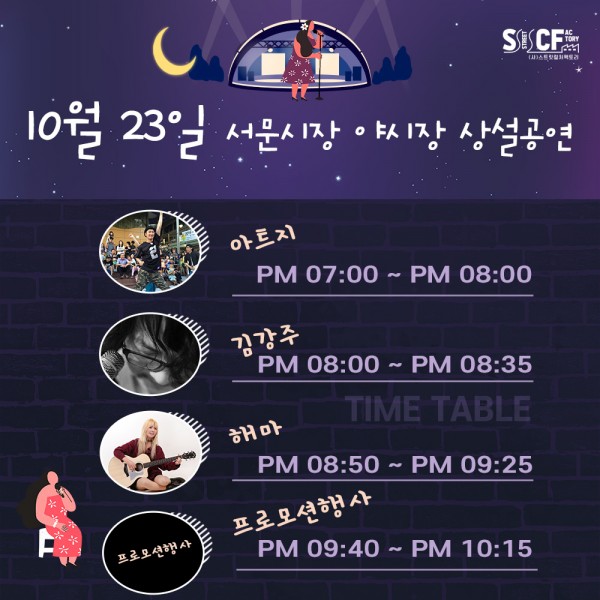 [행사안내] 서문야시장 상설무대 공연안내 10월 23일 페이지 정보 작성자 행사관리자 작성일20-10-23 10:31 조회1,185회 댓글0건 관련링크 이전글 다음글 목록 본문 10월 23일 오늘의 일정입니다. 댓글목록 등록된 댓글이 없습니다. 이전글 다음글 목록