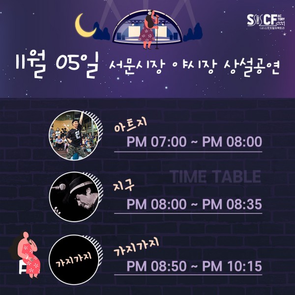 [행사안내] 서문야시장 상설무대 공연안내 11월 5일 페이지 정보 작성자 행사관리자 작성일20-11-05 10:19 조회1,190회 댓글0건 관련링크 이전글 다음글 목록 본문 11월 5일 오늘의 일정 입니다. 댓글목록 등록된 댓글이 없습니다. 이전글 다음글 목록
