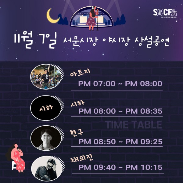 [행사안내] 서문야시장 상설무대 공연안내 11월 7일 페이지 정보 작성자 행사관리자 작성일20-11-07 08:09 조회1,183회 댓글0건 관련링크 이전글 다음글 목록 본문 11월 7일 오늘의 일정 입니다. 댓글목록 등록된 댓글이 없습니다. 이전글 다음글 목록