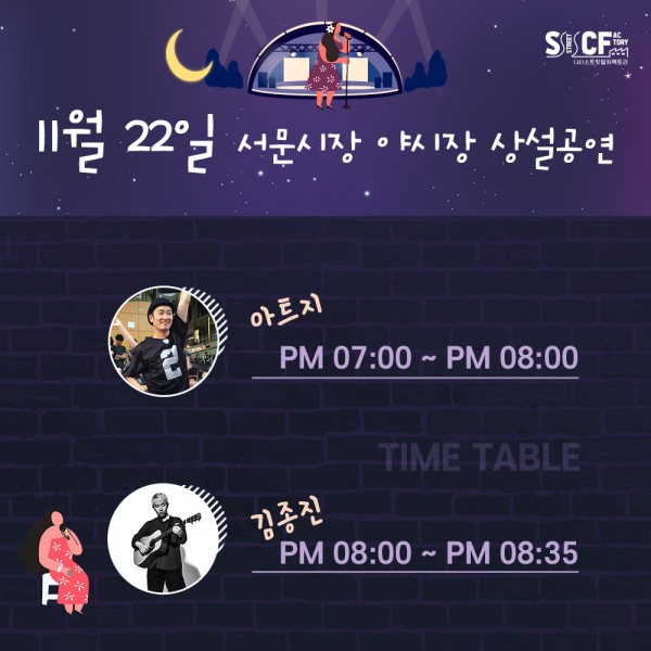 [행사안내] 서문야시장 상설무대 공연안내 11월 21일 페이지 정보 작성자 행사관리자 작성일20-11-22 12:06 조회1,125회 댓글0건 관련링크 이전글 다음글 목록 본문 11월21일 오늘의 일정입니다. 댓글목록 등록된 댓글이 없습니다. 이전글 다음글 목록