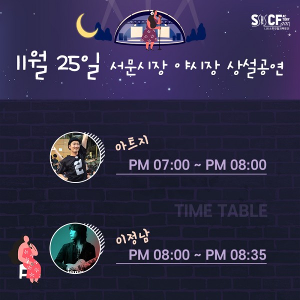 [행사안내] 서문야시장 상설무대 공연안내 11월 25일 페이지 정보 작성자 행사관리자 작성일20-11-25 10:15 조회1,100회 댓글0건 관련링크 이전글 다음글 목록 본문 11월 25일 오늘의 일정 입니다. 댓글목록 등록된 댓글이 없습니다. 이전글 다음글 목록