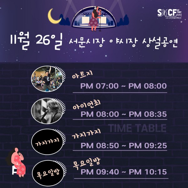[행사안내] 서문야시장 상설무대 공연안내 11월 26일 페이지 정보 작성자 행사관리자 작성일20-11-26 13:49 조회1,164회 댓글0건 관련링크 이전글 다음글 목록 본문 11월 26일 오늘의 일정입니다. 댓글목록 등록된 댓글이 없습니다. 이전글 다음글 목록