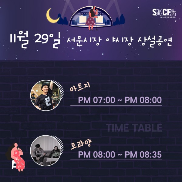 [행사안내] 서문야시장 상설무대 공연안내 11월 29일 페이지 정보 작성자 행사관리자 작성일20-12-04 18:14 조회1,120회 댓글0건 관련링크 이전글 다음글 목록 본문 11월 29일 일정입니다. 댓글목록 등록된 댓글이 없습니다. 이전글 다음글 목록