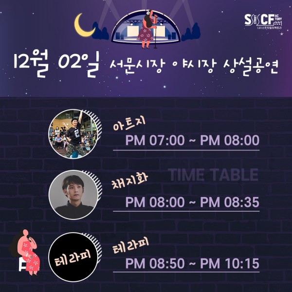 [행사안내] 서문야시장 상설무대 공연안내 12월 2일 페이지 정보 작성자 행사관리자 작성일20-12-04 18:15 조회1,042회 댓글0건 관련링크 이전글 다음글 목록 본문 12월 2일 일정입니다. 댓글목록 등록된 댓글이 없습니다. 이전글 다음글 목록