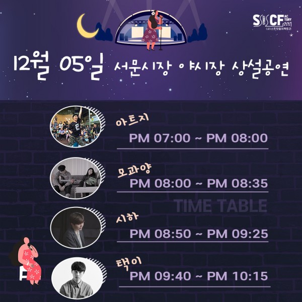 [행사안내] 서문야시장 상설무대 공연안내 12월 5일 페이지 정보 작성자 행사관리자 작성일20-12-05 12:01 조회1,081회 댓글0건 관련링크 이전글 다음글 목록 본문 12월 5일 오늘의 일정 입니다. 댓글목록 등록된 댓글이 없습니다. 이전글 다음글 목록