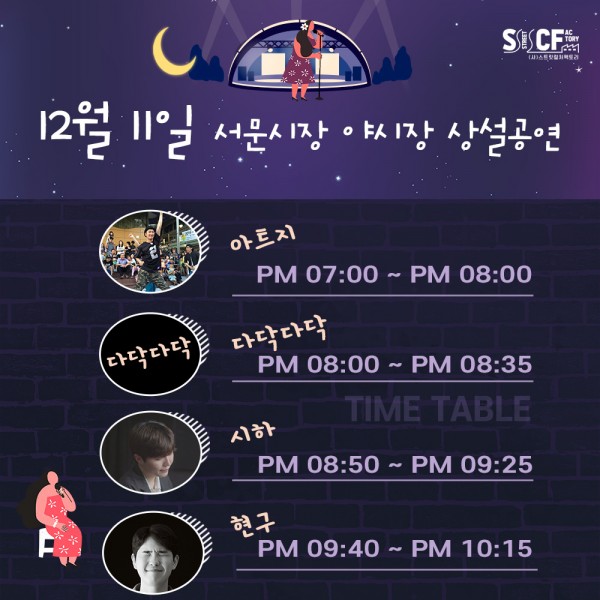 [행사안내] 서문야시장 상설무대 공연안내 12월 11일 페이지 정보 작성자 행사관리자 작성일20-12-11 11:12 조회999회 댓글0건 관련링크 이전글 다음글 목록 본문 12월 11일 오늘의 일정 입니다. 댓글목록 등록된 댓글이 없습니다. 이전글 다음글 목록