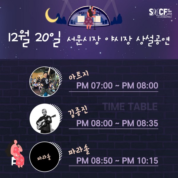 [행사안내] 서문야시장 상설무대 공연안내 12월 20일 페이지 정보 작성자 행사관리자 작성일20-12-21 16:06 조회1,077회 댓글0건 관련링크 이전글 다음글 목록 본문 12월20일 일정입니다. 댓글목록 등록된 댓글이 없습니다. 이전글 다음글 목록