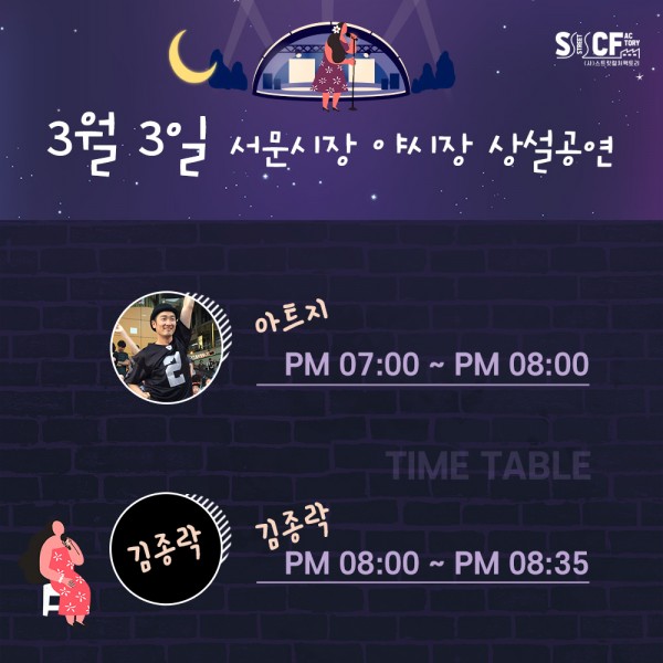 [행사안내] 서문야시장 상설무대 공연안내 3월 3일 페이지 정보 작성자 행사관리자 작성일21-03-03 12:15 조회994회 댓글0건 관련링크 이전글 다음글 목록 본문 3월 3일 오늘의 일정입니다. 댓글목록 등록된 댓글이 없습니다. 이전글 다음글 목록