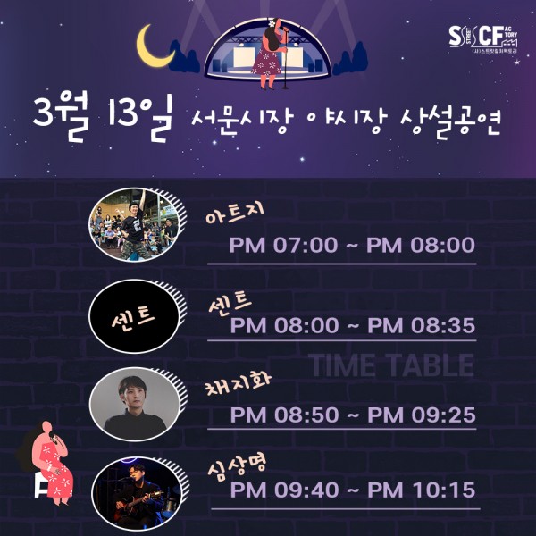 [행사안내] 서문야시장 상설무대 공연안내 3월 13일 페이지 정보 작성자 행사관리자 작성일21-03-13 10:57 조회1,033회 댓글0건 관련링크 이전글 다음글 목록 본문 3월 13일 오늘의 일정입니다. 댓글목록 등록된 댓글이 없습니다. 이전글 다음글 목록