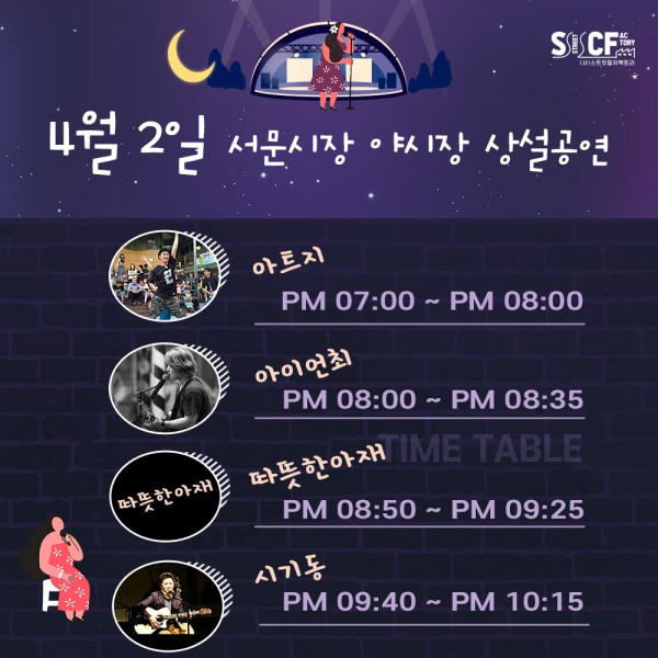 [행사안내] 서문야시장 상설무대 공연안내 4월 2일 페이지 정보 작성자 행사관리자 작성일21-04-02 18:26 조회1,130회 댓글0건 관련링크 이전글 다음글 목록 본문 4월 2일 오늘의 일정 입니다. 댓글목록 등록된 댓글이 없습니다. 이전글 다음글 목록
