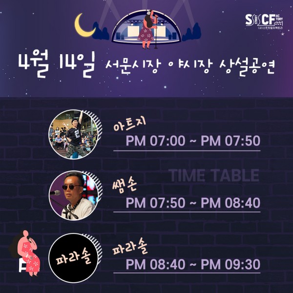[행사안내] 서문야시장 상설무대 공연안내 4월 14일 페이지 정보 작성자 행사관리자 작성일21-04-14 18:41 조회1,049회 댓글0건 관련링크 이전글 다음글 목록 본문 4월 14일 오늘의 일정 입니다. 댓글목록 등록된 댓글이 없습니다. 이전글 다음글 목록