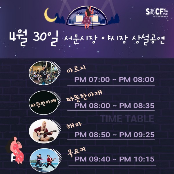[행사안내] 서문야시장 상설무대 공연안내 4월 30일 페이지 정보 작성자 행사관리자 작성일21-04-30 15:04 조회1,013회 댓글0건 관련링크 이전글 다음글 목록 본문 4월 30일 오늘의 일정 입니다. 댓글목록 등록된 댓글이 없습니다. 이전글 다음글 목록