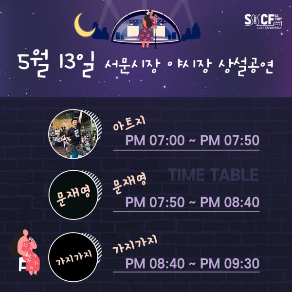 [행사안내] 서문야시장 상설무대 공연안내 5월 13일 페이지 정보 작성자 행사관리자 작성일21-05-13 12:33 조회968회 댓글0건 관련링크 이전글 다음글 목록 본문 5월 13일 오늘의 일정 입니다. 댓글목록 등록된 댓글이 없습니다. 이전글 다음글 목록