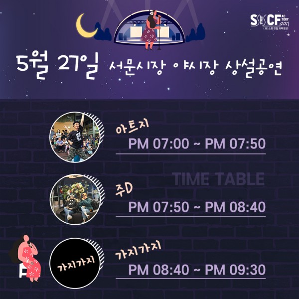 [행사안내] 서문야시장 상설무대 공연안내 5월 27일 페이지 정보 작성자 행사관리자 작성일21-05-27 13:01 조회949회 댓글0건 관련링크 이전글 다음글 목록 본문 5월 27일 오늘의 일정 입니다. 댓글목록 등록된 댓글이 없습니다. 이전글 다음글 목록