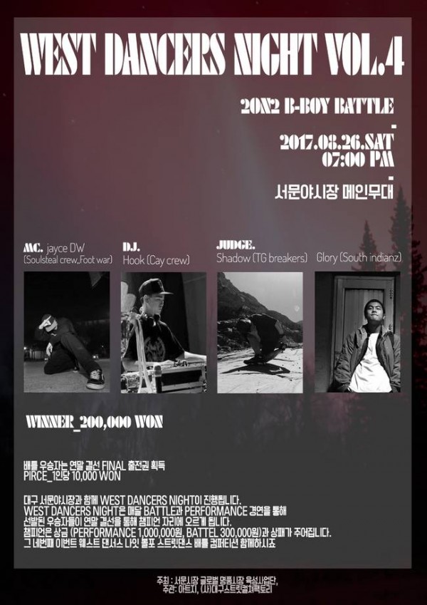 West Dancer`s Night B-Boy 댄스배틀대회 개최! 페이지 정보 작성자 마스터 작성일17-08-24 14:24 조회2,202회 댓글0건 관련링크 이전글 다음글 목록 본문 - [이 게시물은 마스터님에 의해 2017-08-28 14:26:05 공지사항에서 이동 됨] 댓글목록 등록된 댓글이 없습니다. 이전글 다음글 목록