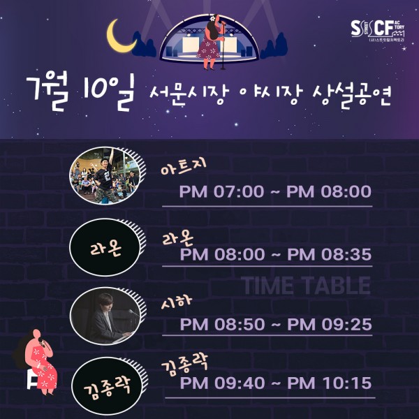 [행사안내] 서문야시장 상설무대 공연안내 7월 10일 페이지 정보 작성자 행사관리자 작성일21-07-11 15:25 조회938회 댓글0건 관련링크 이전글 다음글 목록 본문 7월 10일 일정 입니다. 댓글목록 등록된 댓글이 없습니다. 이전글 다음글 목록