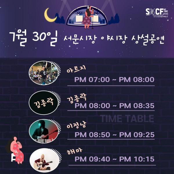 [행사안내] 서문야시장 상설무대 공연안내 7월 30일 페이지 정보 작성자 행사관리자 작성일21-07-31 20:30 조회1,035회 댓글0건 관련링크 이전글 다음글 목록 본문 7월 30일 일정 입니다. 댓글목록 등록된 댓글이 없습니다. 이전글 다음글 목록