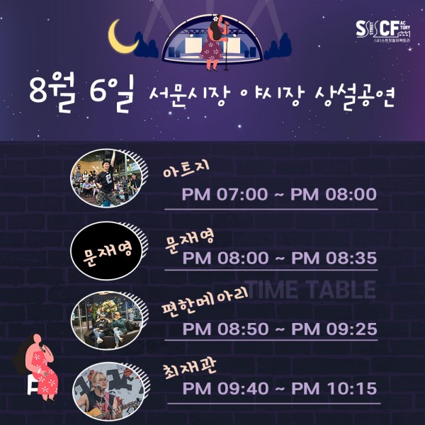 [행사안내] 서문야시장 상설무대 공연안내 8월 6일 페이지 정보 작성자 행사관리자 작성일21-08-07 19:07 조회961회 댓글0건 관련링크 이전글 다음글 목록 본문 8월 6일 일정입니다. 댓글목록 등록된 댓글이 없습니다. 이전글 다음글 목록