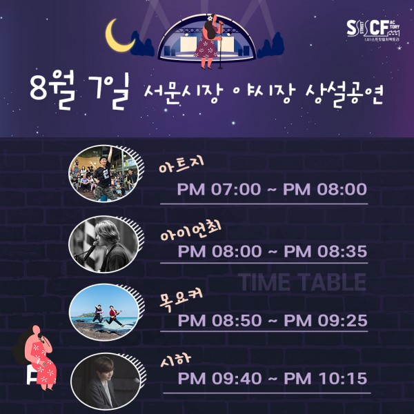 [행사안내] 서문야시장 상설무대 공연안내 8월 7일 페이지 정보 작성자 행사관리자 작성일21-08-07 19:08 조회923회 댓글0건 관련링크 이전글 다음글 목록 본문 8월 7일 오늘의 일정 입니다. 댓글목록 등록된 댓글이 없습니다. 이전글 다음글 목록