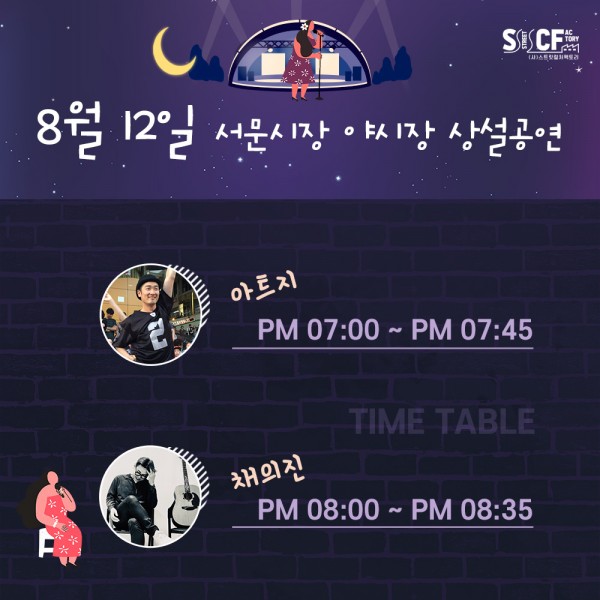 [행사안내] 서문야시장 상설무대 공연안내 8월 12일 페이지 정보 작성자 행사관리자 작성일21-08-12 19:41 조회947회 댓글0건 관련링크 이전글 다음글 목록 본문 8월 12일 오늘의 일정 입니다. 댓글목록 등록된 댓글이 없습니다. 이전글 다음글 목록