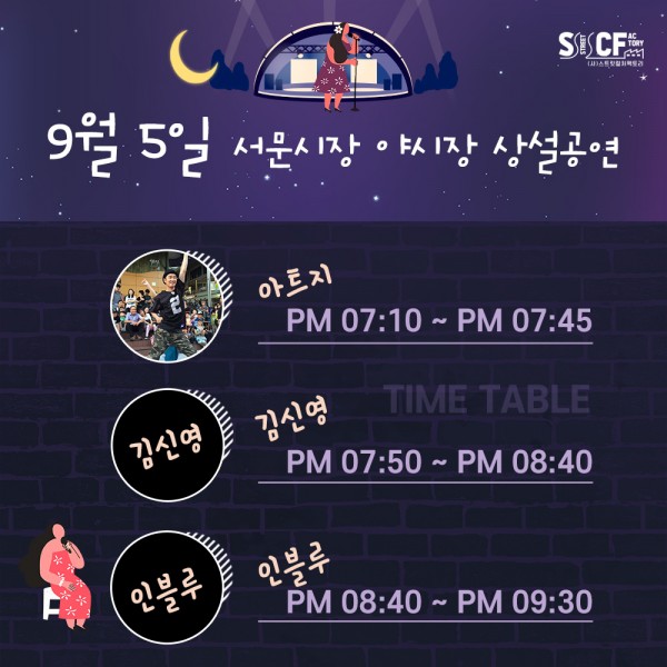 [행사안내] 서문야시장 상설무대 공연안내 9월 5일 페이지 정보 작성자 행사관리자 작성일21-09-06 17:43 조회902회 댓글0건 관련링크 이전글 다음글 목록 본문 9월 5일 일정 입니다. 댓글목록 등록된 댓글이 없습니다. 이전글 다음글 목록