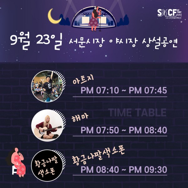 [행사안내] 서문야시장 상설무대 공연안내 9월 23일 페이지 정보 작성자 행사관리자 작성일21-09-23 11:32 조회1,023회 댓글0건 관련링크 이전글 다음글 목록 본문 9월 23일 오늘의 일정 입니다. 댓글목록 등록된 댓글이 없습니다. 이전글 다음글 목록