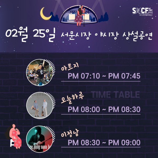 [행사안내] 서문야시장 상설무대 공연안내 02월 25일 페이지 정보 작성자 행사관리자 작성일22-02-25 17:57 조회912회 댓글0건 관련링크 이전글 다음글 목록 본문 2월 25일 오늘의 일정 입니다. 댓글목록 등록된 댓글이 없습니다. 이전글 다음글 목록