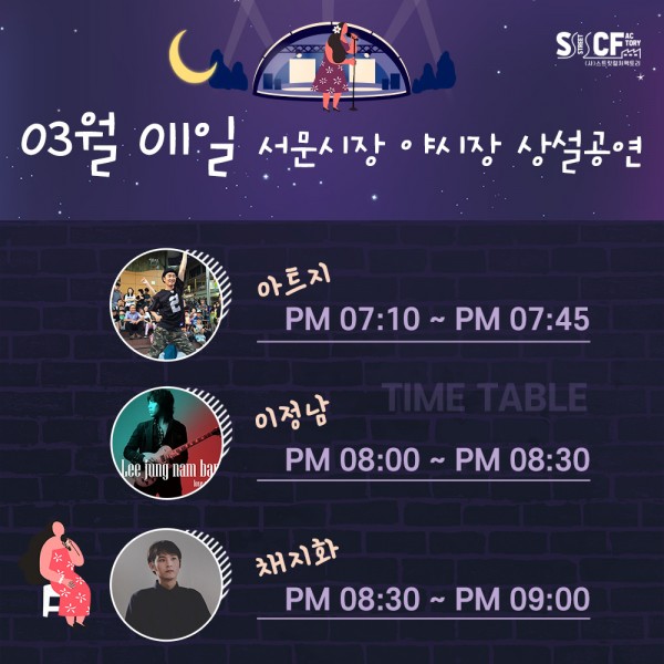 [행사안내] 서문야시장 상설무대 공연안내 03월 11일 페이지 정보 작성자 행사관리자 작성일22-03-11 13:38 조회898회 댓글0건 관련링크 이전글 다음글 목록 본문 3월 11일 오늘의 일정 입니다. 댓글목록 등록된 댓글이 없습니다. 이전글 다음글 목록