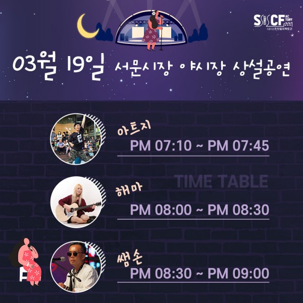 [행사안내] 서문야시장 상설무대 공연안내 03월 19일 페이지 정보 작성자 행사관리자 작성일22-03-19 18:10 조회939회 댓글0건 관련링크 이전글 다음글 목록 본문 3월 19일 오늘의 일정 입니다. 댓글목록 등록된 댓글이 없습니다. 이전글 다음글 목록