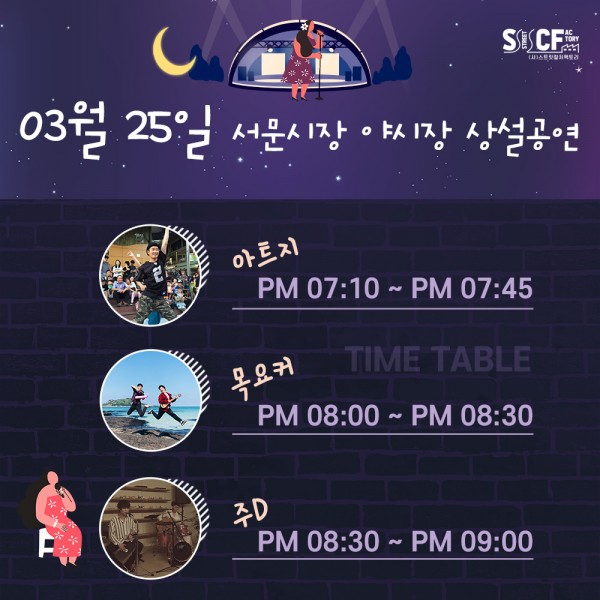 [행사안내] 서문야시장 상설무대 공연안내 03월 25일 페이지 정보 작성자 행사관리자 작성일22-03-25 17:56 조회978회 댓글0건 관련링크 이전글 다음글 목록 본문 3월 25일 오늘의 일정 입니다. 댓글목록 등록된 댓글이 없습니다. 이전글 다음글 목록